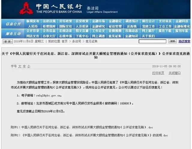 记者了解到,近日央行发布《中国人民银行关于开展大额现金管理试点的通知》。该《通知》表示,试点为期2年,先在河北省开展,再推广至浙江省、深圳市。